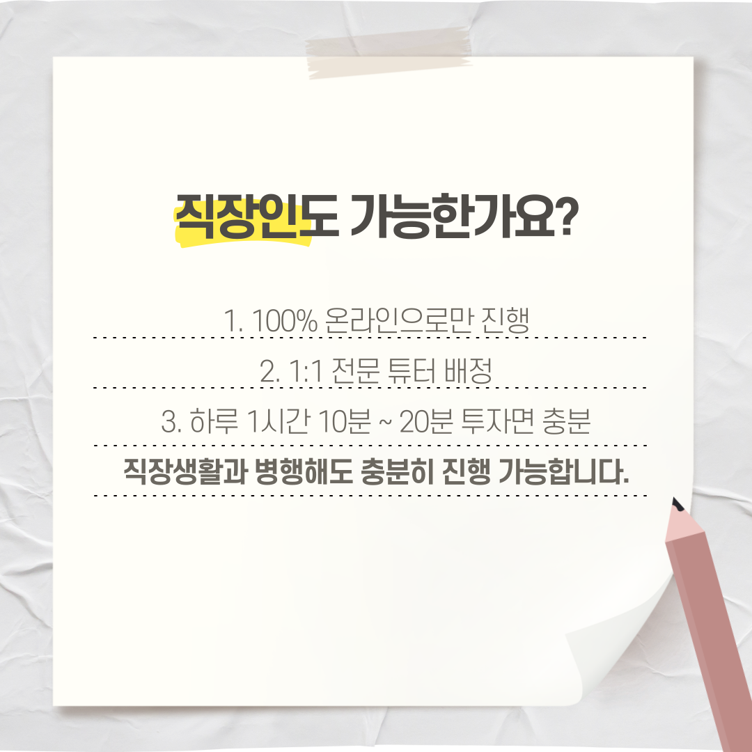 방식 : 100% 온라인 강의로 진행되어 직장인도 병행하기 좋습니다.