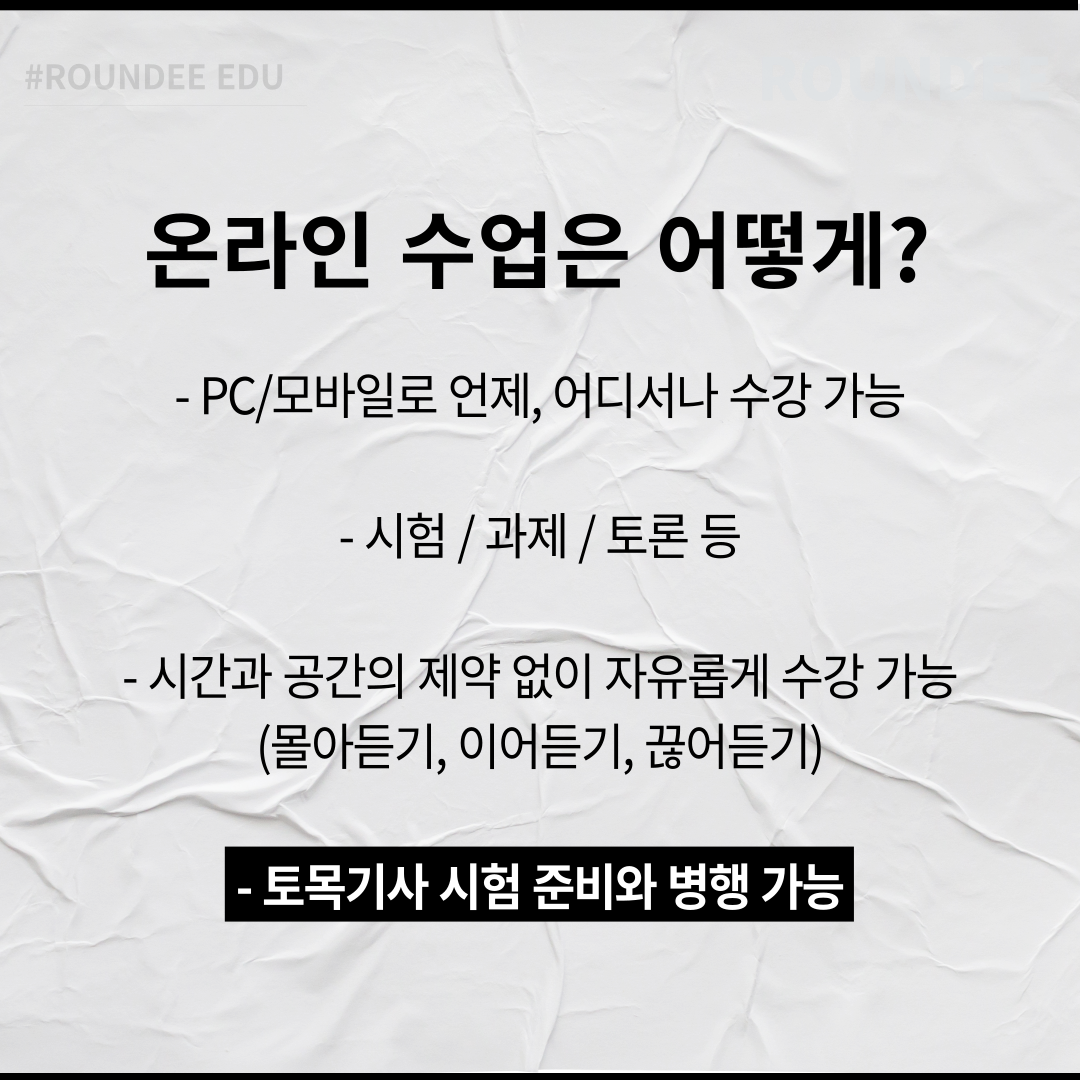 핵심은 '토목 관련 전공 106학점 이상 취득'입니다. 놀라운 점은 이 모든 과정을 100% 온라인으로 진행할 수 있어 직장을 다니면서도 무리 없이 병행 가능하다는 것입니다.