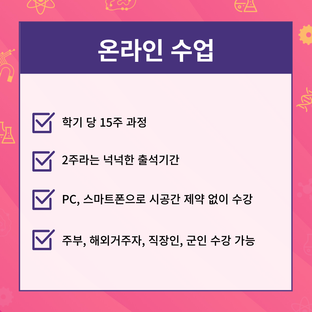 현재 여러 학점은행제 교육기관에서 온라인 과정을 운영하고 있어 시간과 공간의 제약 없이 준비할 수 있습니다. 학기당 15주 과정이며, 출석 인정 기간이 넉넉하게 설정되어 있어 직장인, 주부, 해외 거주자, 군인 등도 무리 없이 수강할 수 있습니다. PC나 스마트폰만 있으면 언제 어디서나 학습이 가능하다는 점이 큰 장점입니다.