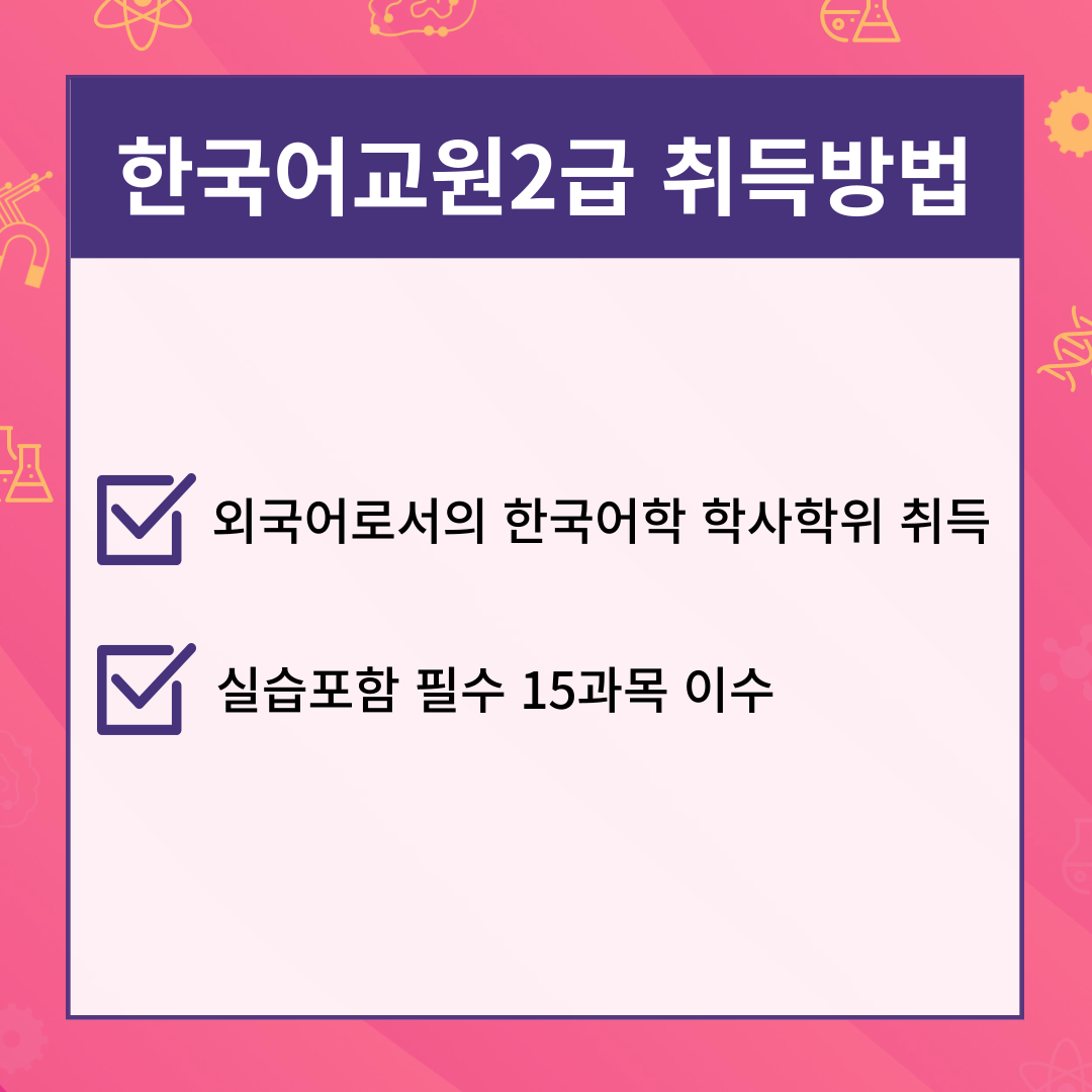 가장 일반적인 한국어 교원 자격증 취득방법은 ‘외국어로서의 한국어학’ 전공을 통해 학사 학위를 취득하는 길입니다. 문화체육관광부로부터 지정받은 대학(원)에서 필수 15과목(실습 포함)을 이수해야 합니다. 이 과정은 이론과 실기를 겸비한 전문가를 양성하는 체계적인 코스입니다.