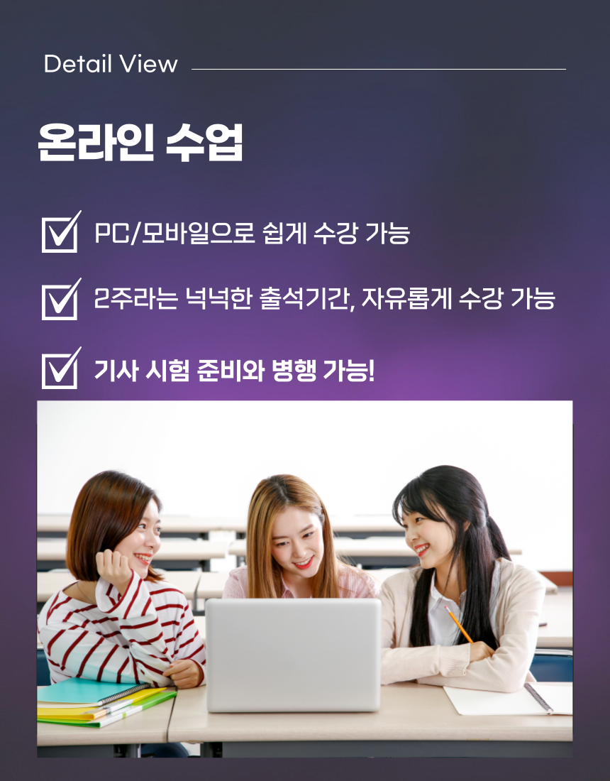 100% 온라인 과정으로 직장인도 부담 없이 수강 가능