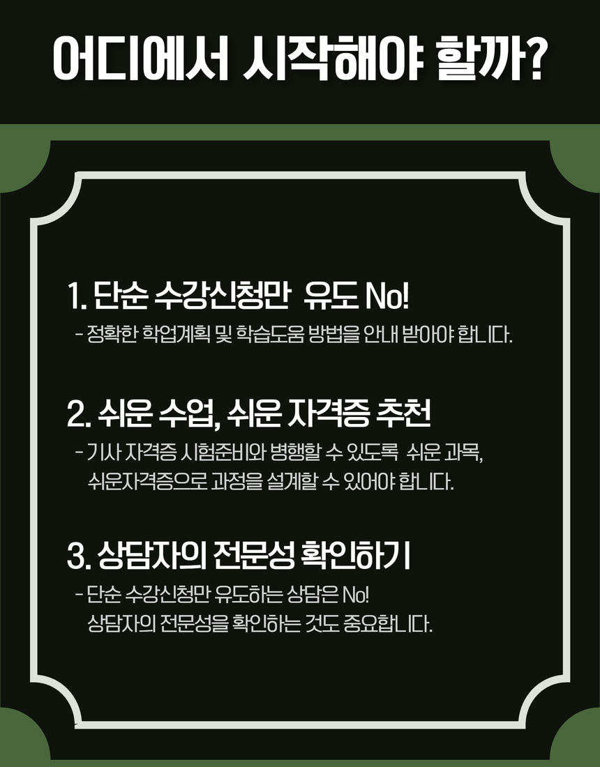 믿을 수 있는 기관을 선택하는 것이 빠르고 정확하게 자격을 취득하는 첫걸음입니다.